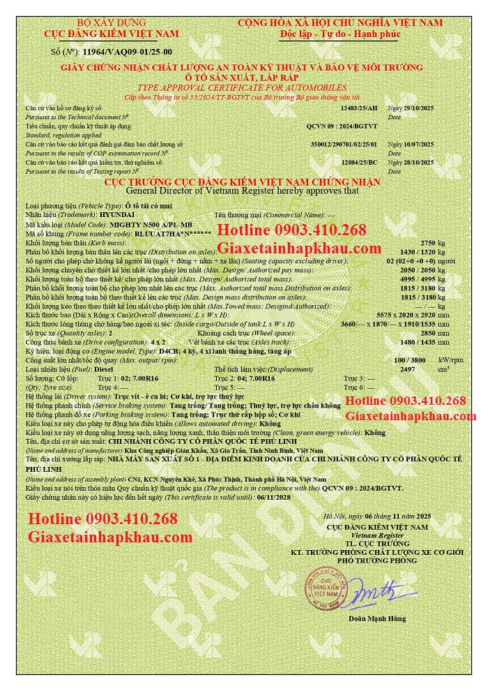 Mẫu thùng bạt Hyundai Mighty N500A mới nhất Hyundai Phú Linh, tải trọng dự kiến 2,5 tấn thùng dài 3,6m, lốp đồng bộ 7.00-16