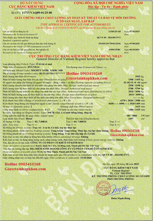Mẫu thùng bạt Hyundai Mighty N550LA của cty Kinh Bắc, tải trọng dự kiến 2,5t, thùng dài 4,5m