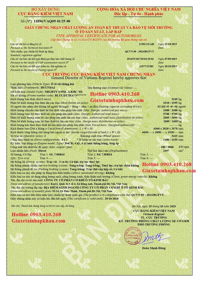 Hyundai N550LA Thùng kín Kinh Bắc - Hotline 0903410268