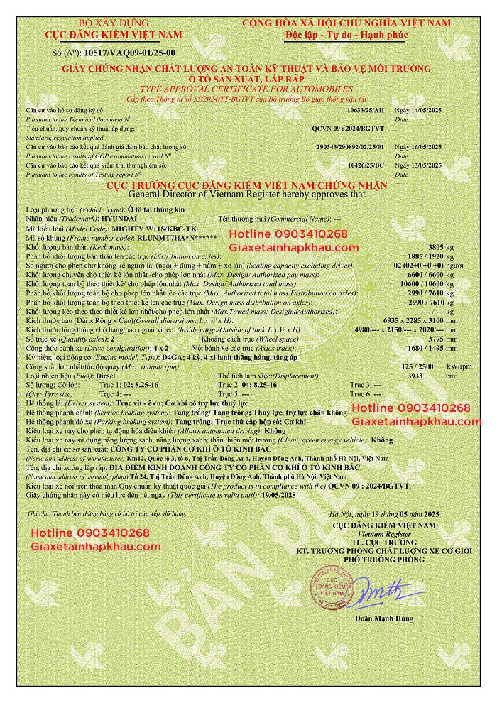 Hyundai W11S Thùng Kín Kinh Bắc - Hotline 0903410268