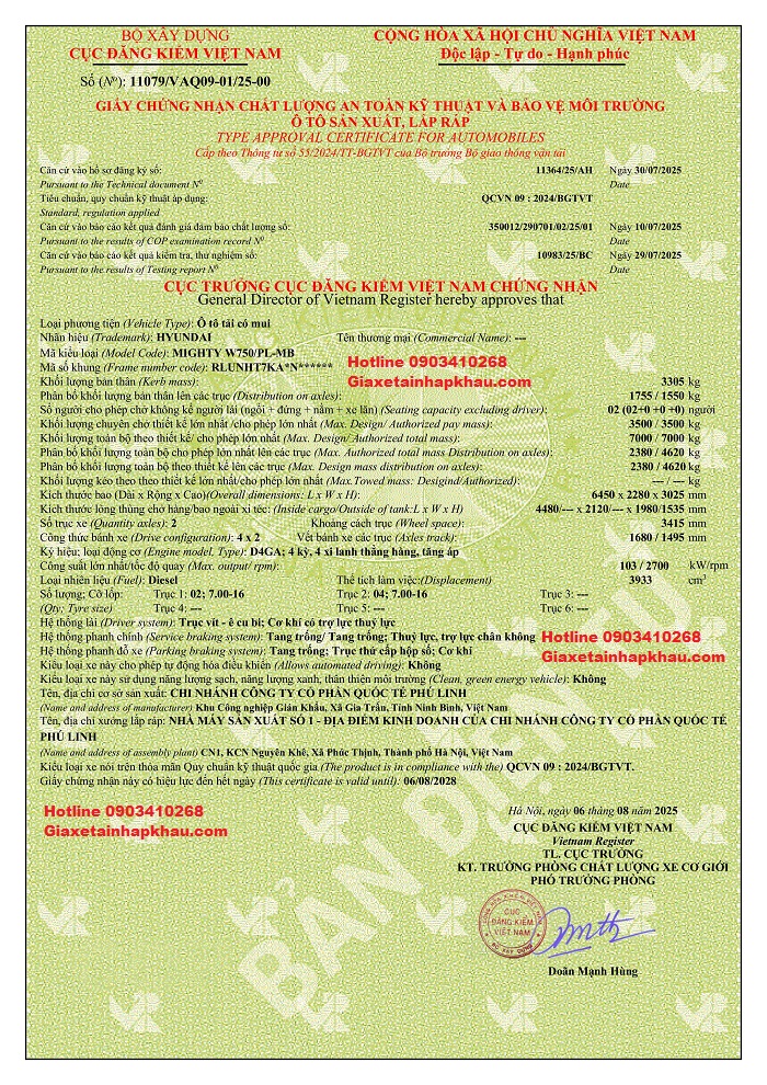 Hyundai W750 Thùng bạt Hyundai Phú Linh - Hotline 0903410268