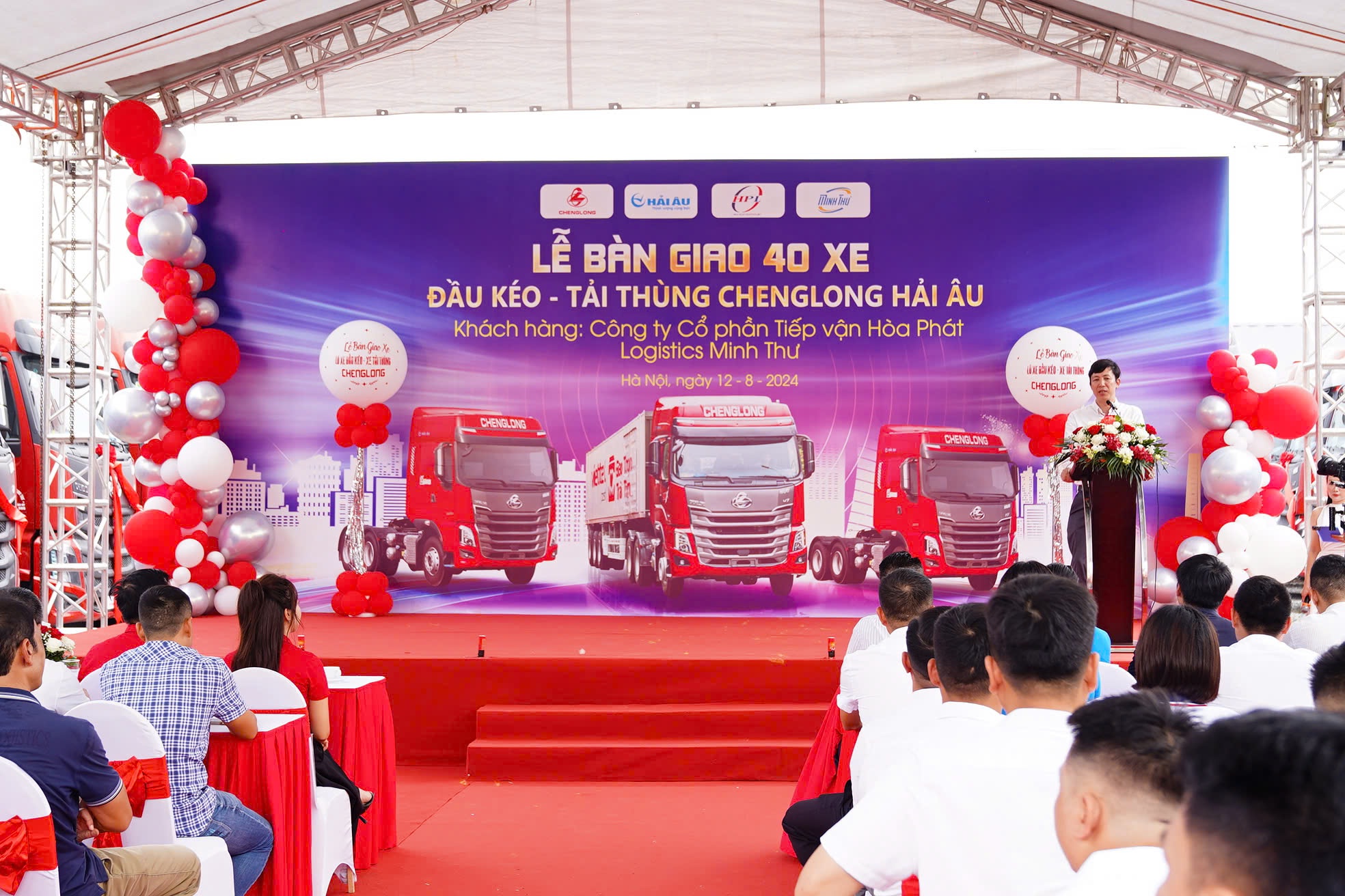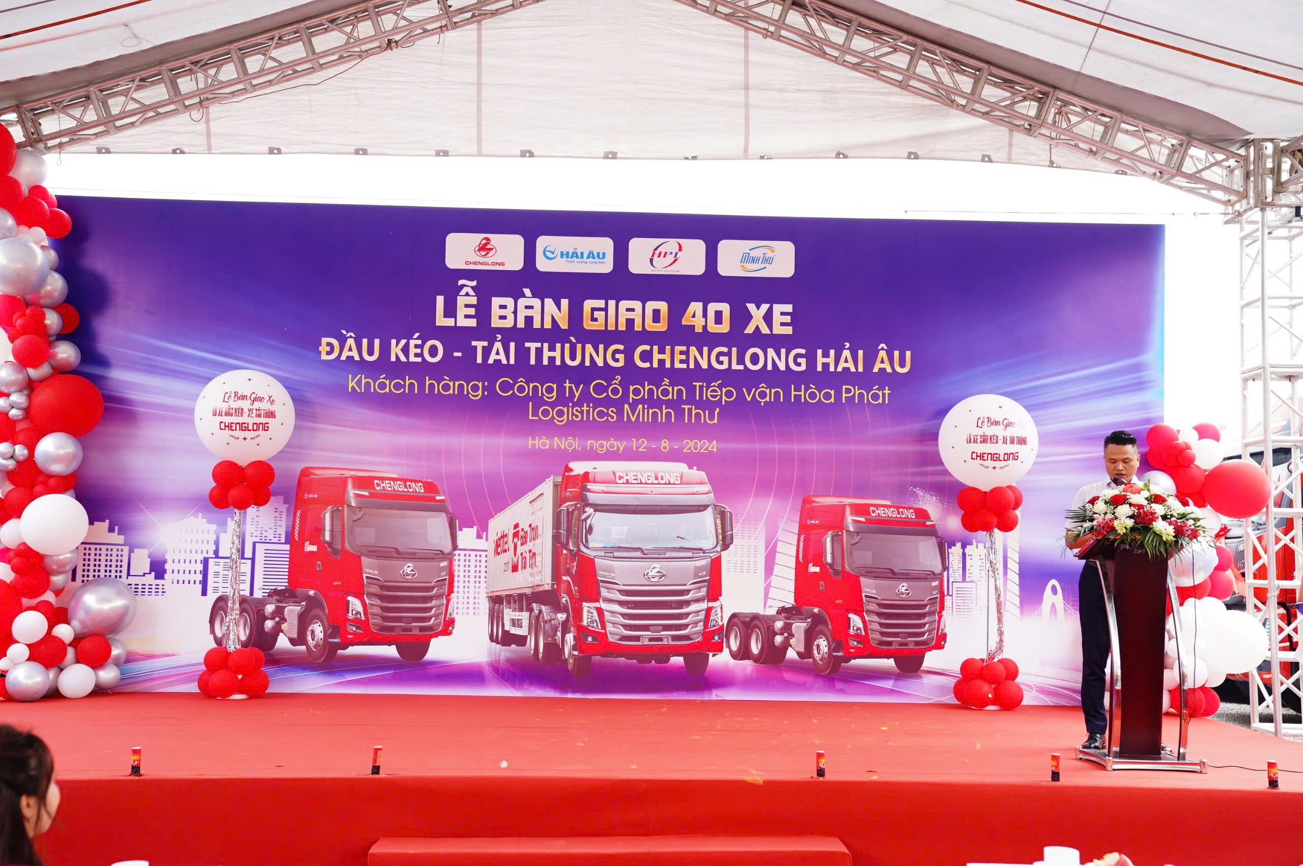 Phát biểu tại Lễ bàn giao, Ông Hoàng Đình Kiên – Tổng Giám đốc Công ty Tiếp Vận Hòa Phát, chia sẻ: “Trong lĩnh vực vận tải đường bộ, với sự đầu tư mới này, chúng tôi đang sở hữu đội xe bao gồm gần 300 phương tiện các loại được phân bổ tại 3 trạm trung chuyển chính ở Bắc - Trung - Nam, giúp khách hàng có nhiều nhiều sự lựa chọn giá trị qua những giải pháp vận chuyển đường bộ chất lượng cao. Việc đầu tư thêm nhiều phương tiện vận chuyển mới sẽ giúp Hòa Phát và Minh Thư tăng cường năng lực vận chuyển trong thời gian tới, mang đến cho các khách hàng sự vững tâm về chất lượng dịch vụ. Chúc mừng công ty CPĐT Ô tô Hải Âu là nhà cung cấp 40 phương tiện vận chuyển đầu kéo với thương hiệu Chenglong và mong muốn công ty tiếp tục giữ vững chất lượng dịch vụ và đồng hành cùng Hòa Phát và Minh Thư Logistics trong các dự án sắp tới.”