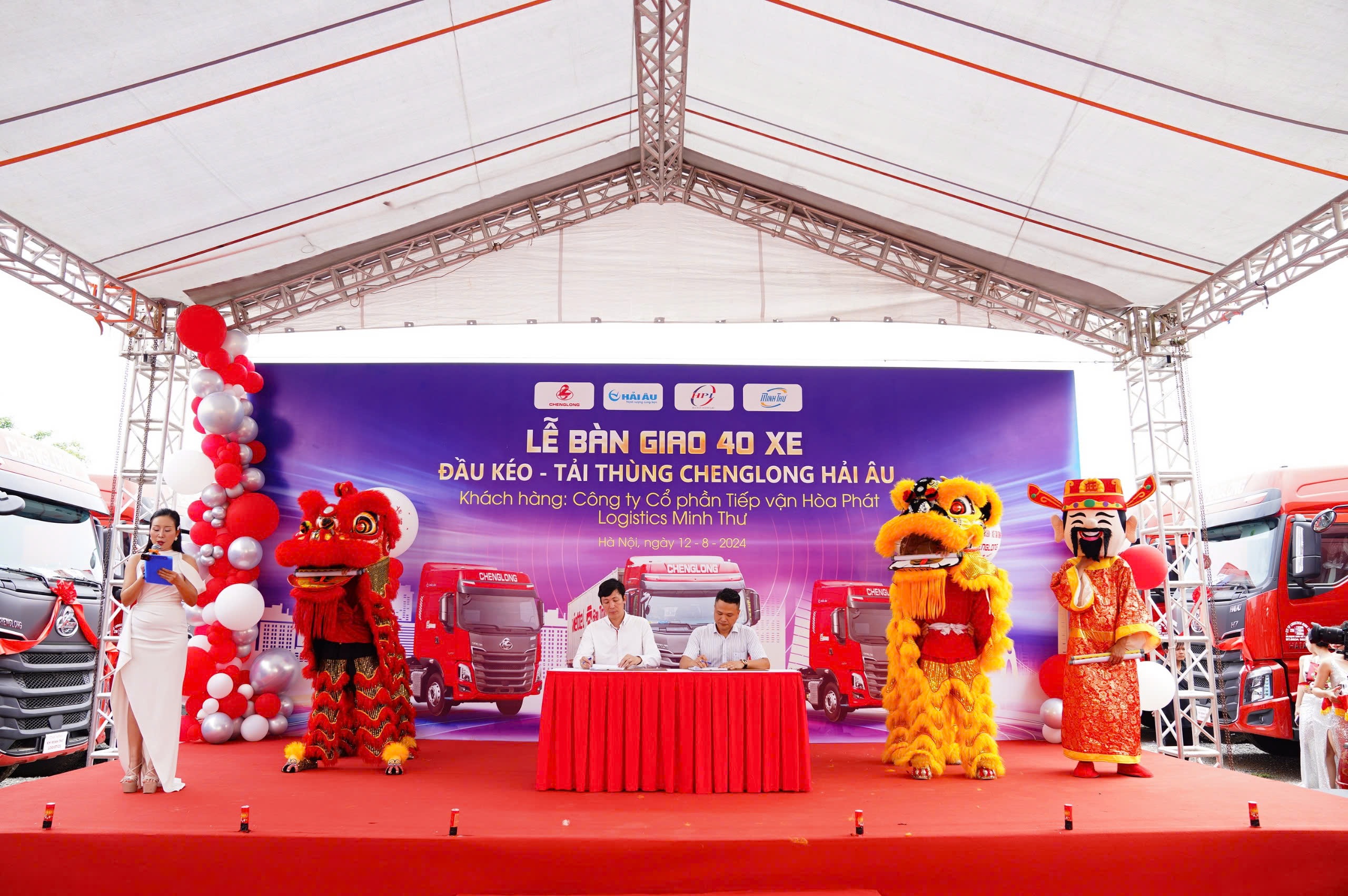 Lễ bàn giao đã đánh dấu cột mốc quan trọng không chỉ đối với Ô tô Hải Âu trong lĩnh vực cung cấp xe tải thương hiệu Chenglong uy tín, chất lượng cao cho các doanh nghiệp vận tải lớn tại Việt Nam mà còn thể hiện tầm vóc và sự phát triển mạnh mẽ của Hòa Phát Logistics và Minh Thư Logistics trong lĩnh vực vận tải đường bộ bất chấp tình hình khó khăn của thị trường nói chung.