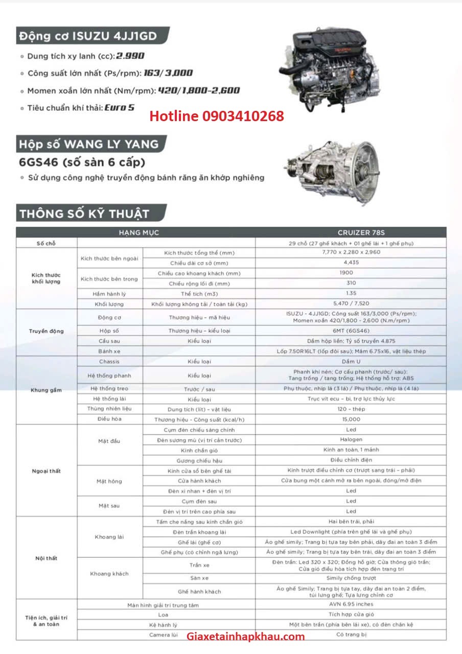 Thaco 29 chỗ mới - Thaco Cruizer 78S - Thaco 29 chỗ thân hẹp 2026 -- Hotline 0903410268