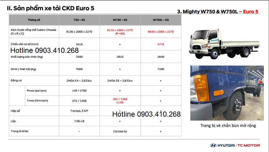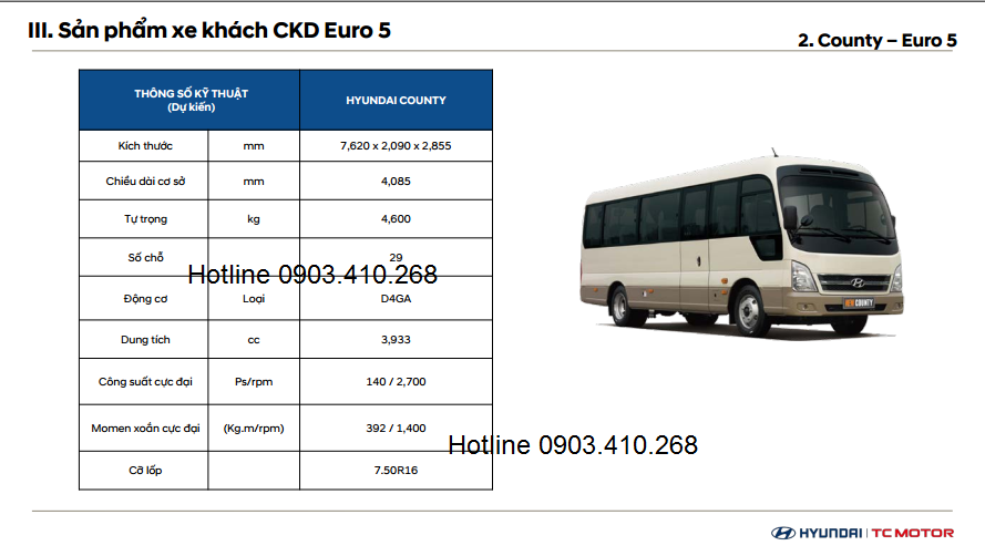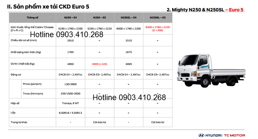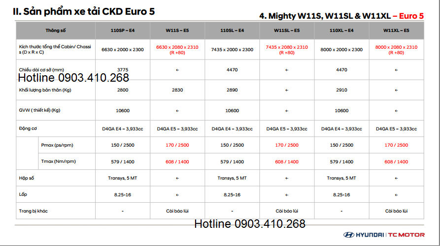 Thông số kỹ thuật chi tiết các dòng xe tải Hyundai Euro 5 - Xe khách Hyundai Euro 5 - Hotline 0903410268 - Hyundai Phú Linh