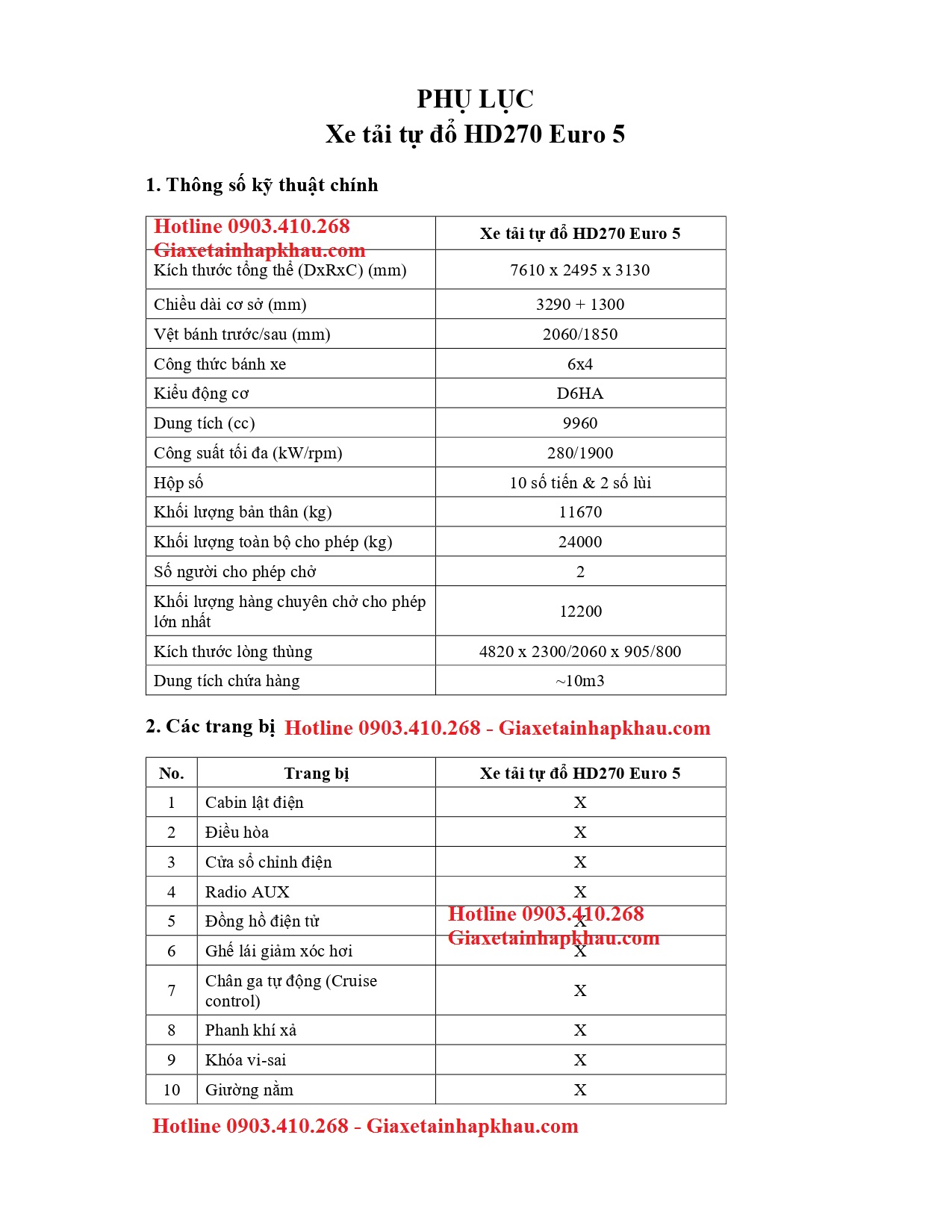 Thông số kỹ thuật xe BEN HYUNDAI HD270 EURO 5 I Giá xe BEN HYUNDAI 3 chân HD270 EURO 5 I Hotline 0903410268