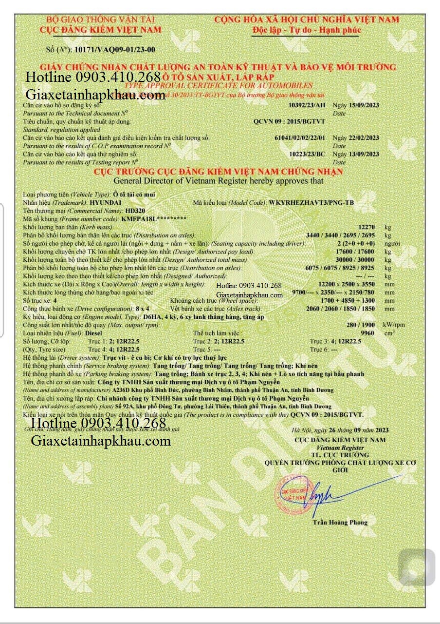Sau khoảng 06 tháng chờ đợi thì phiếu mui bạt xe 4 chân HYUNDAI HD320 Euro 5 đầu tiên đã khai sinh