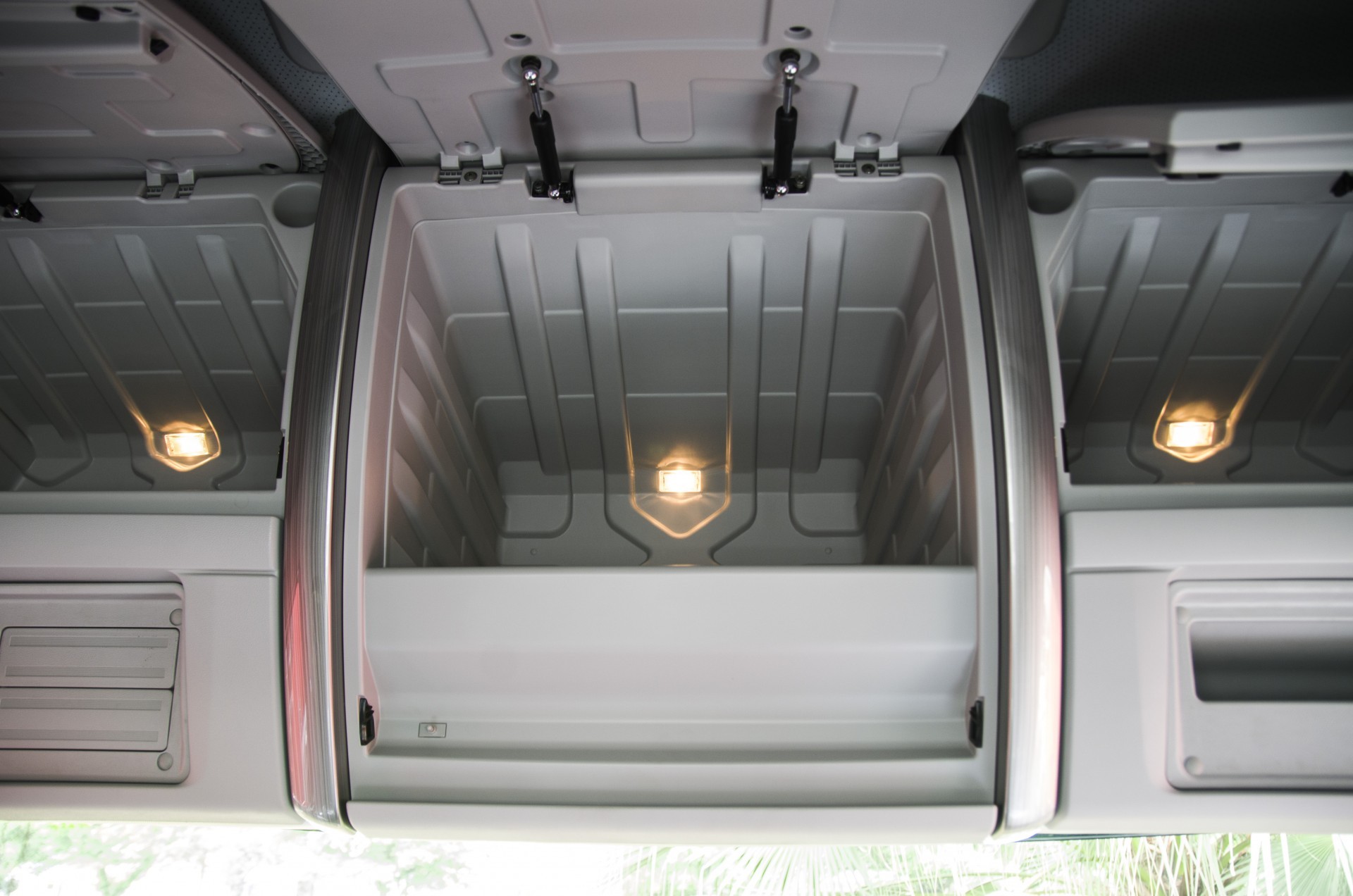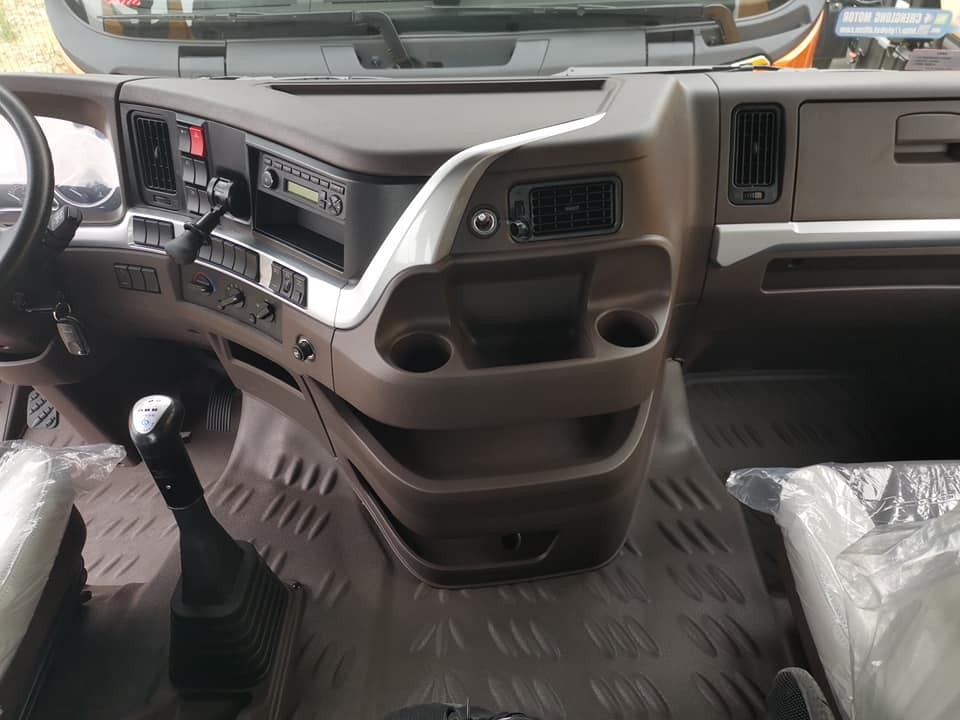 Bên trong khoang cabin có không gian rộng rãi, với nhiều trang bị như ghế lái bóng hơi êm ái, gương gập chỉnh điện, khoang sau với 2 giường tầng, nhiều hộc đựng đồ lớn giúp tài xế và phụ xe thoải mái nghỉ ngơi trên những chuyến hành trình dài. Ngoài ra xe có hệ thống điều hoà điện độc lập, do đó tài xế có thể sử dụng điều hoà mà không cần phải nổ máy khi xe không di chuyển.